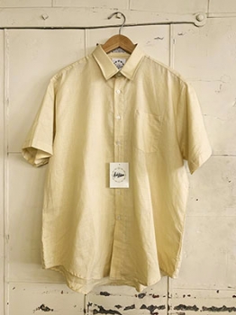 (L) Mens Vintage 80s Short Sleeved Shirt. Egg Shell Yellow Linen. Never Worn!