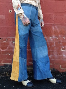 (40X32) BIG MAN Vintage 70s ANTONIO GUISEPPIE Jeans!!! Patchwork w/ Yellow Leather!